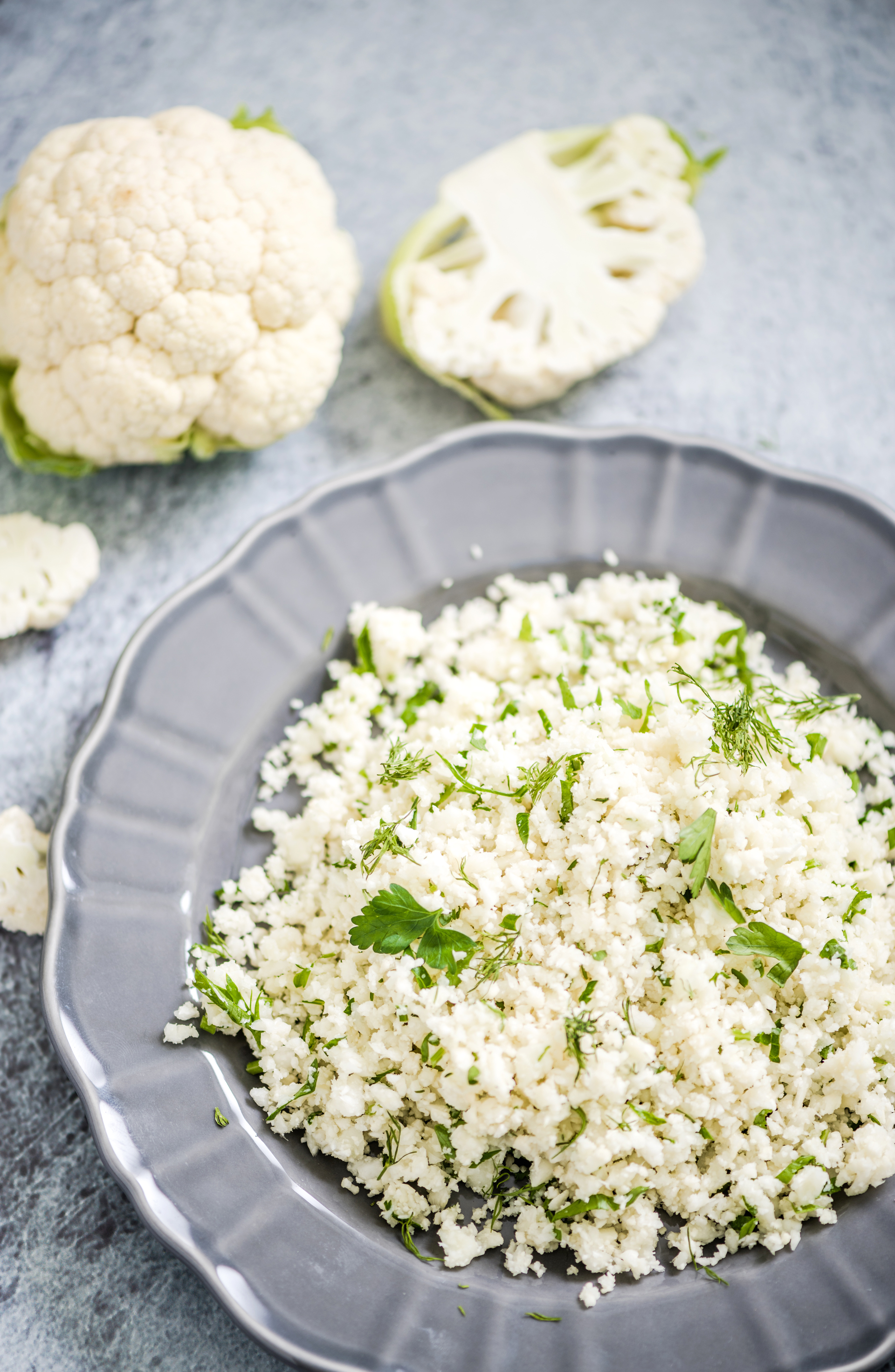 Triturarem la coliflor amb l'ajuda d'un ratllador, un robot o una picadora, fins a obtenir uns grans semblants a la sèmola de cuscús. Si no disposem de picadora es podria anar fent amb compte amb un ganivet, encara que és una mica més laboriós.